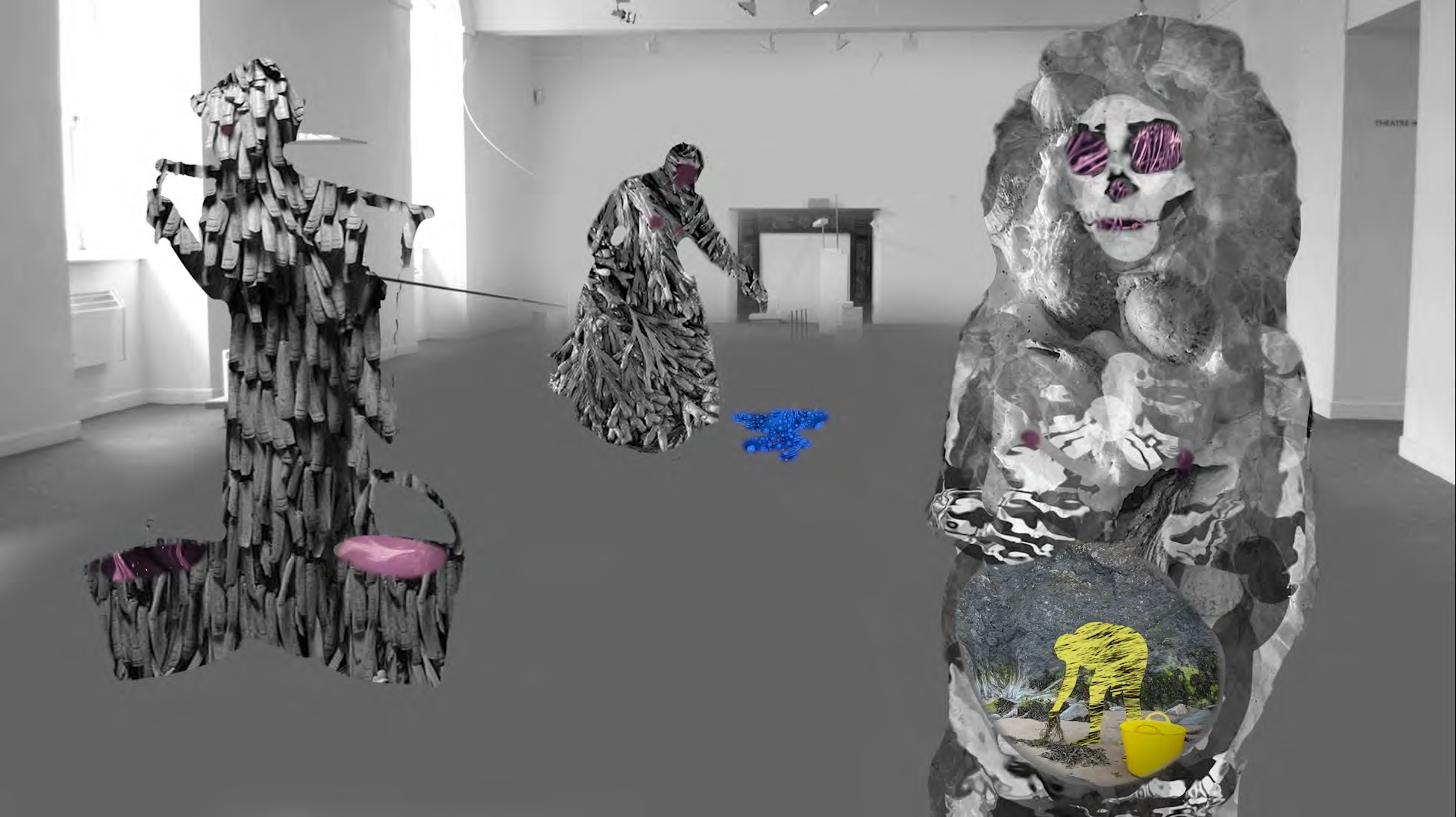 The Amphibious Grúagach, depicts a shape-shifting cryptid from Irish folklore, a guardian of land and sea, performing ritualistic movements that evoke ancient animistic traditions. Part spectral, part corporeal, The Grúagach embodies the blurred lines between myth, ecology, and the supernatural